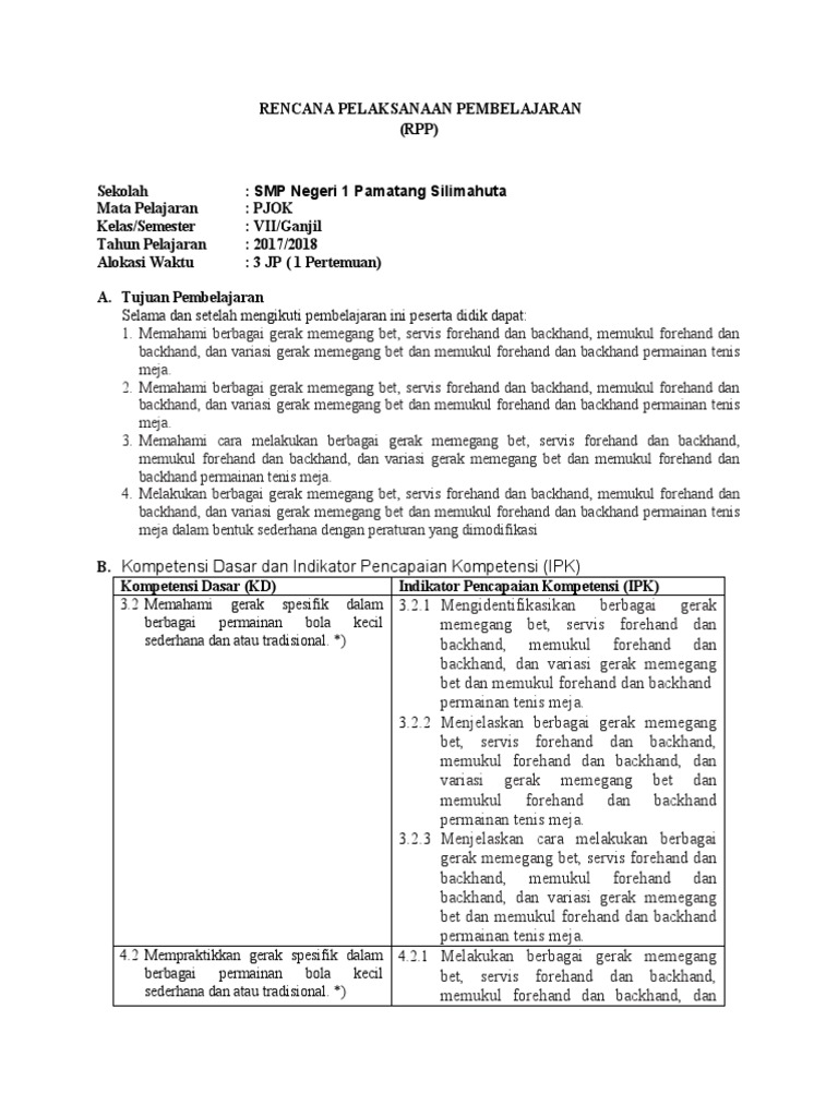 Rpp pjok smp kelas vii tenis meja,download. Tenis meja dapat dimainkan dengan mudah, tidak membutuhkan tempat yang luas. Rpp bahasa inggris kelas vii kurikulum 2013deskripsi lengkap. Permainan tenis meja biasanya dimainkan di dalam ruangan dengan menggunakan sebidang papan atau meja yang dibatasi net atau jaring pada bagian tengah. Download rpp k13 pjok tenis meja kelas vii revisi terbaru.