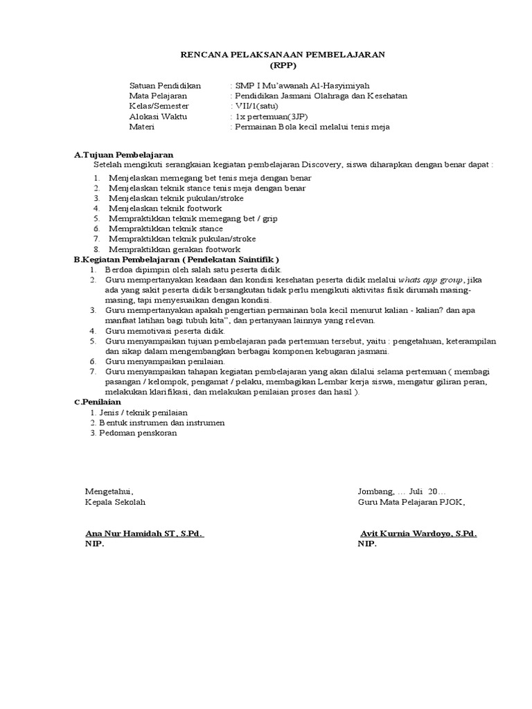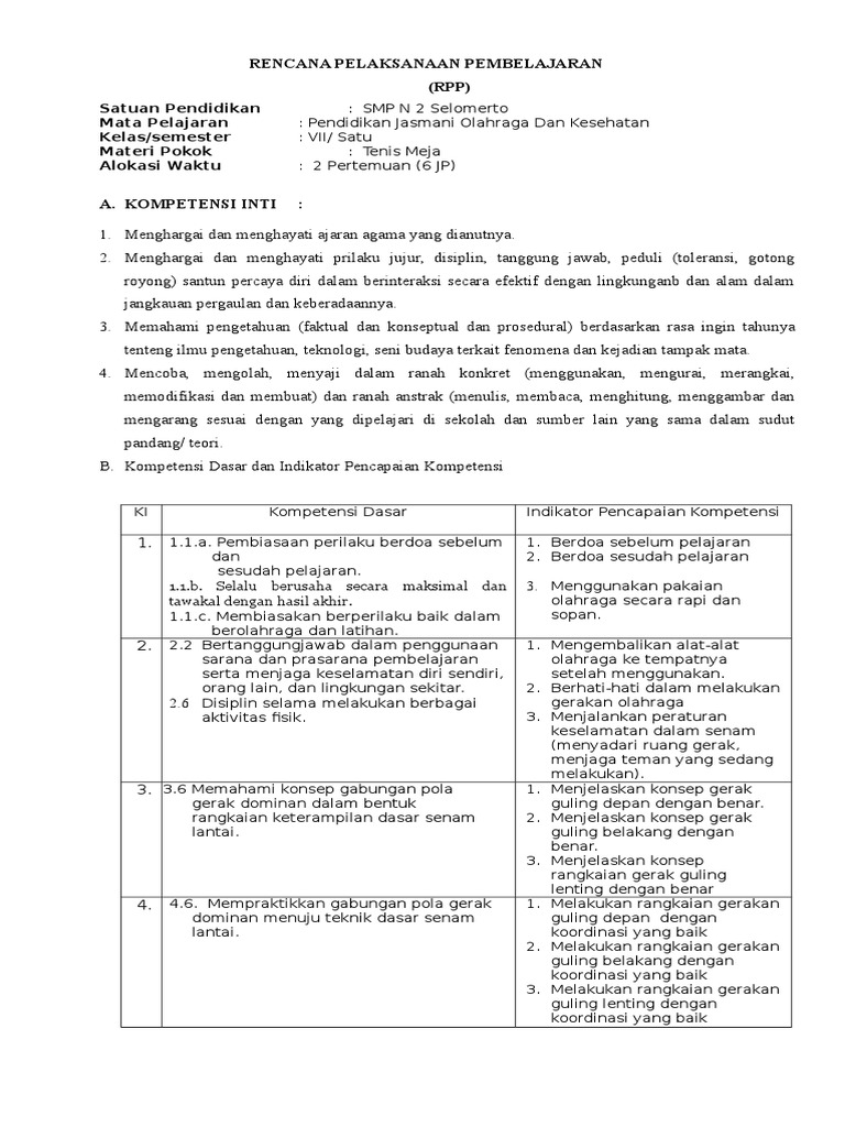 Rencana pelaksanaan pembelajaran ( rpp ). Memahami bentuk aljabar, persamaan dan pertidaksamaan linear satu variabel. Rpp pjok kelas vii semester ii yogie prasetiya, s.pd. Dulunya pingpong lebih sering dikenal sebagai whiff waff atau permainan yang sering dimainkan di atas meja ruang makan sebagai sarana. Download rpp 1 lembar penjas kelas vii semester 1.